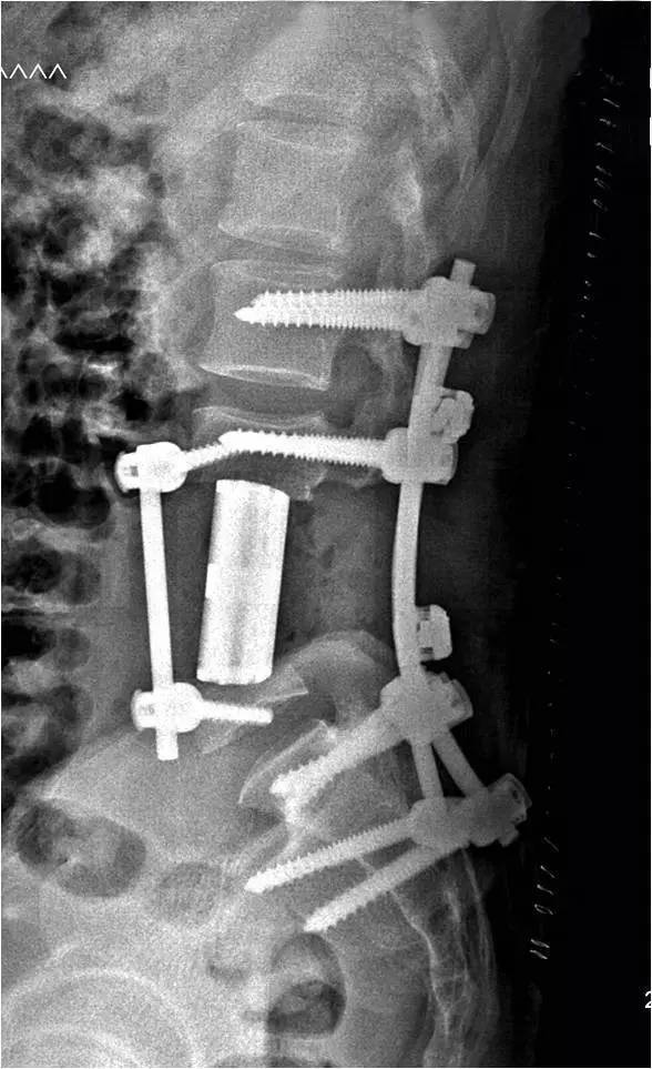 术后检查显示,患者体内的3D打印人工椎体匹配良好,人工椎体两端弧形设计与上下椎体终板贴敷可靠。患者术后恢复良好,术后两周就可下地行走,并于近日出院。