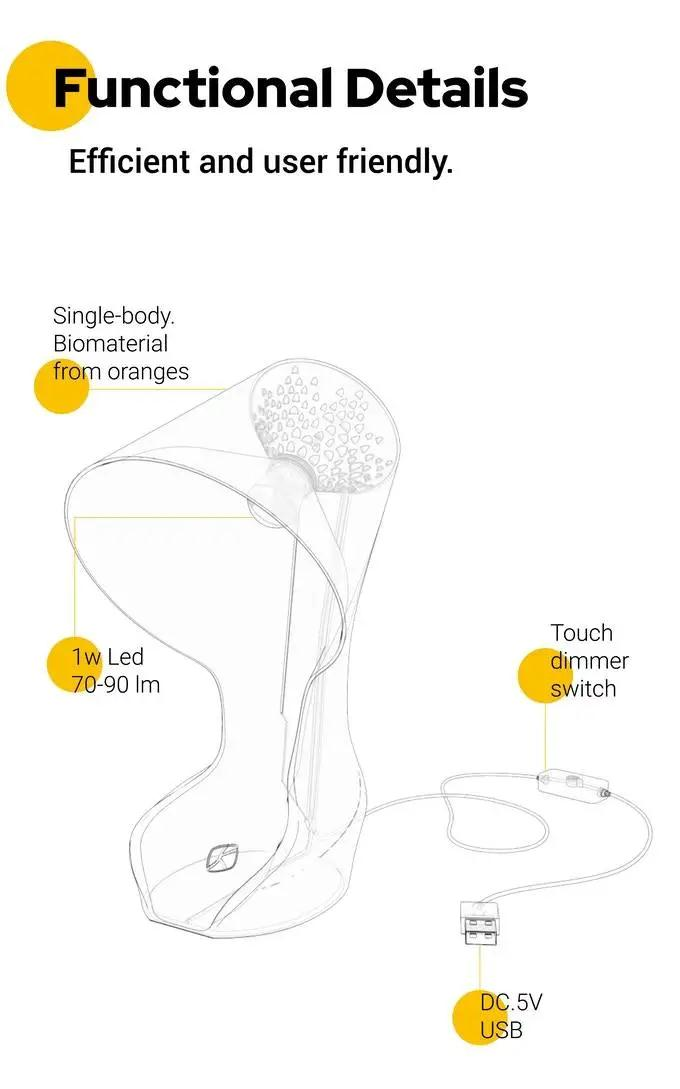 用户在阅读的时候使用这生机勃勃的橙皮台灯,将会获得舒适的别样体验,与亲近自然的愉快感受。