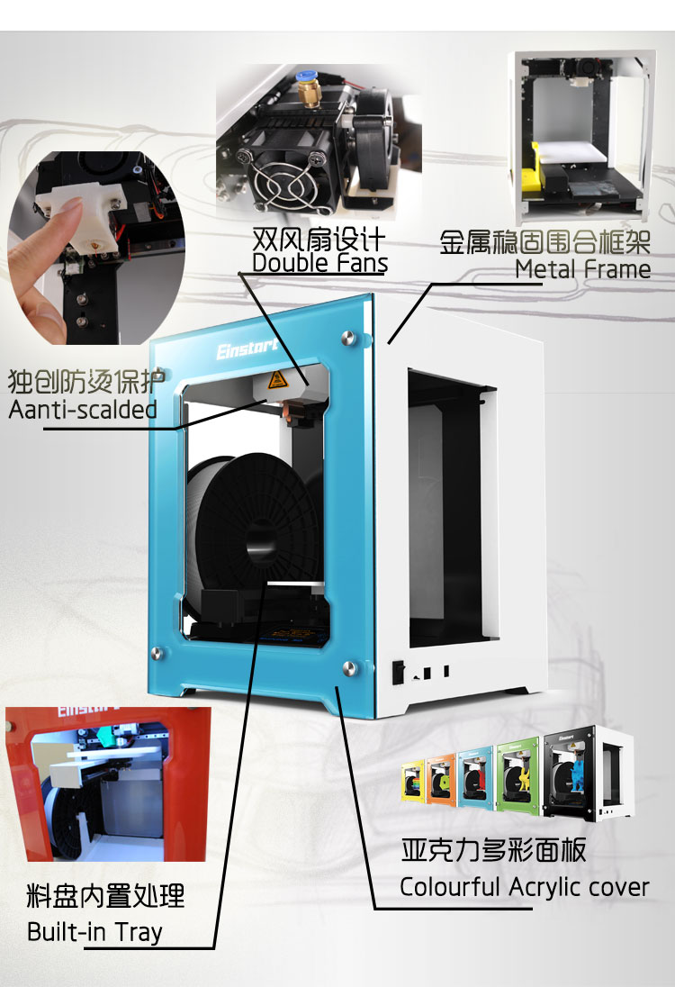 独创防烫保护、双风扇设计、金属稳固围合框架、料盘内置处理、亚克力多彩面板