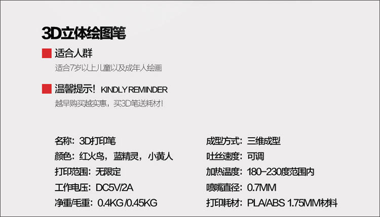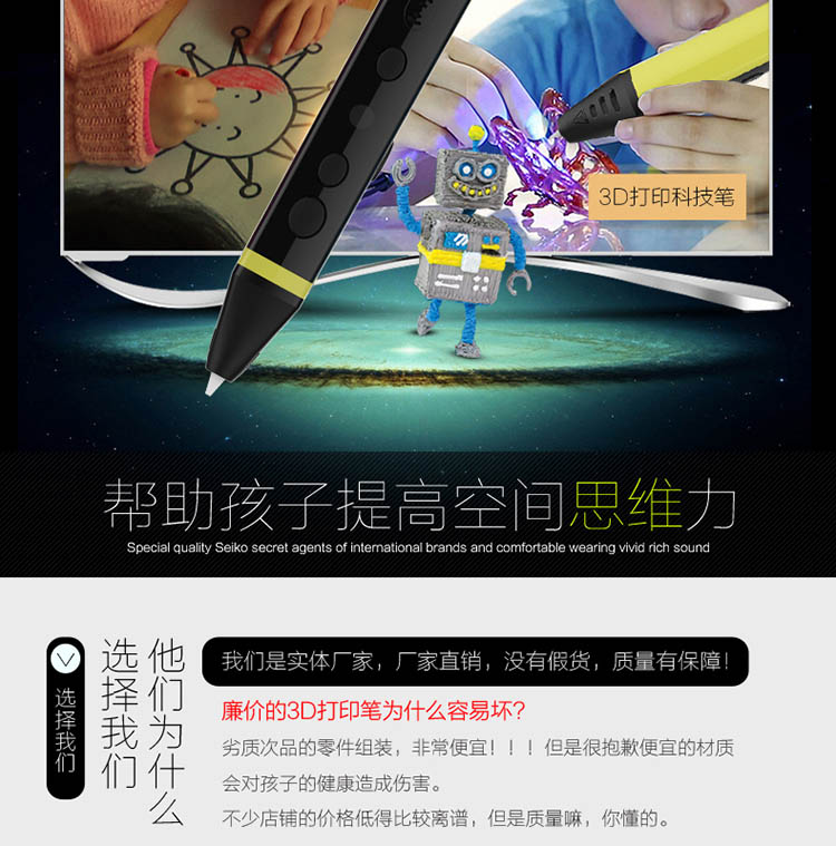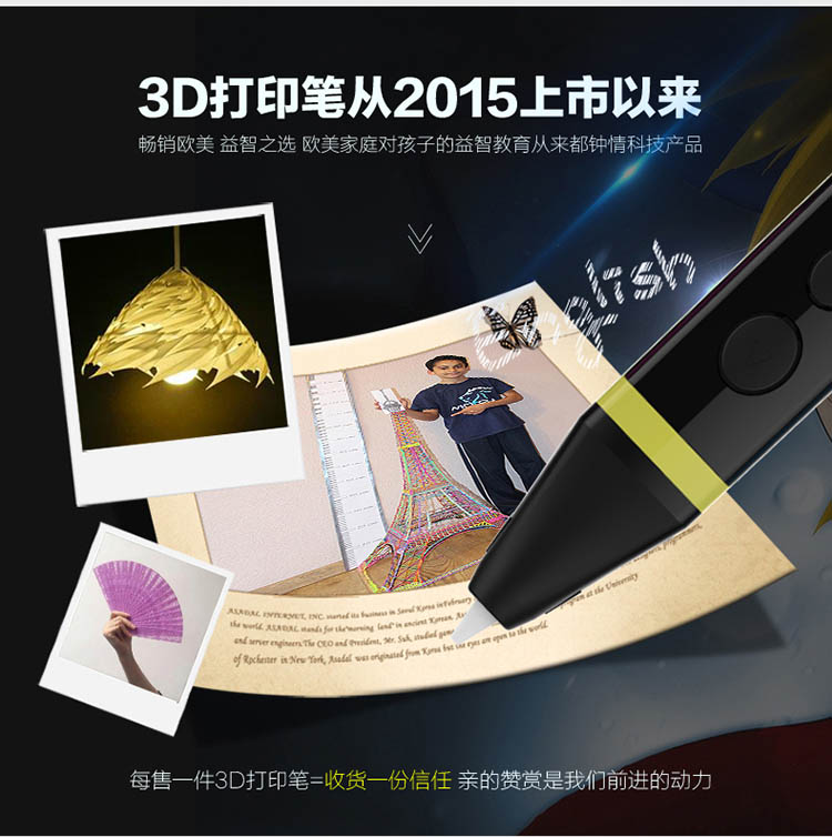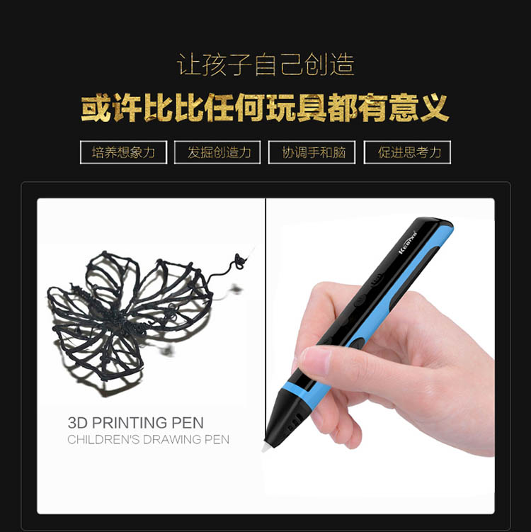 Polyes Q1光固化3D打印笔 usb充电 3D涂鸦笔 立体笔LED蓝光笔