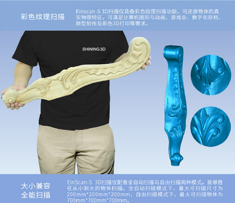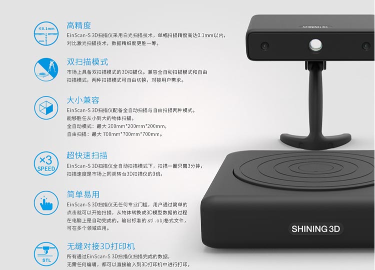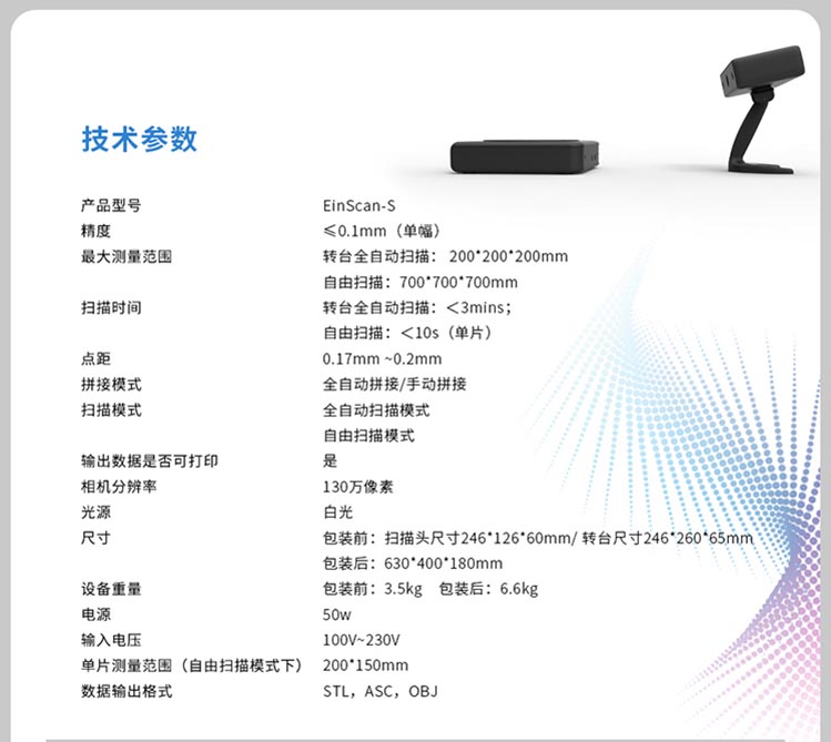 单幅扫描精度高达0.1mm以内,兼容全自动扫描和自由扫描模式