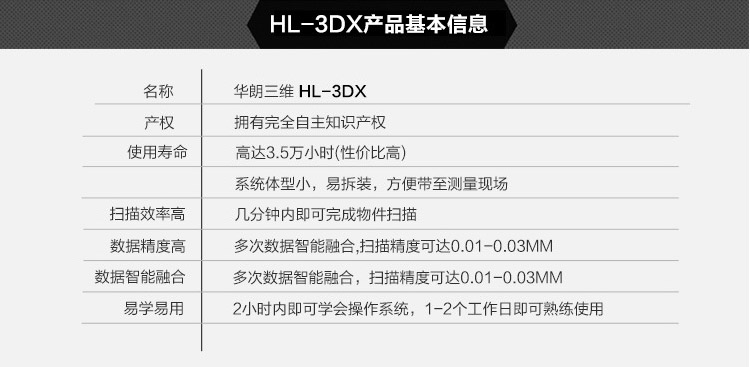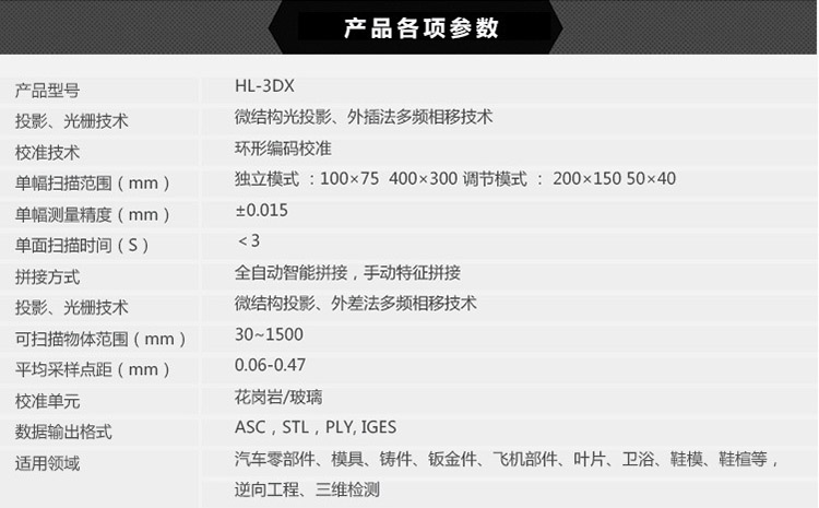 工业级三维扫描仪HL-3DX技术特点